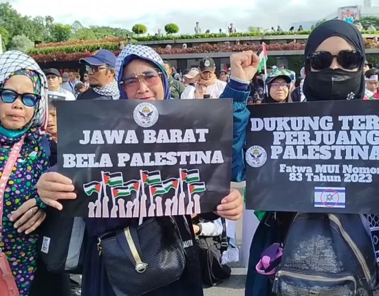 Lingkup.id, Bandung – Ribuan masyarakat dari berbagai elemen Islam se Bandung Raya menggelar aksi demonstrasi bela Palestina di depan Gedung Pemerintahan Jawa Barat,