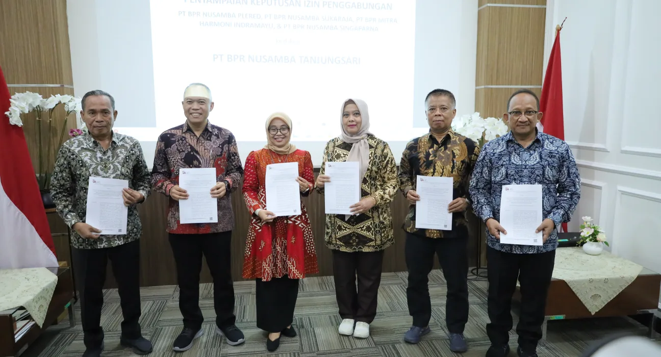 Persetujuan penggabungan tersebut tertuang dalam Surat Keputusan Anggota Dewan Komisioner OJK Nomor KEP-15/D.03/2026 tanggal 20 Februari 2026. Adapun empat BPR yang bergabung yakni PT BPR Nusamba Sukaraja, PT BPR Nusamba Plered, PT BPR Nusamba Singaparna, serta PT BPR Mitra Harmoni Indramayu.
